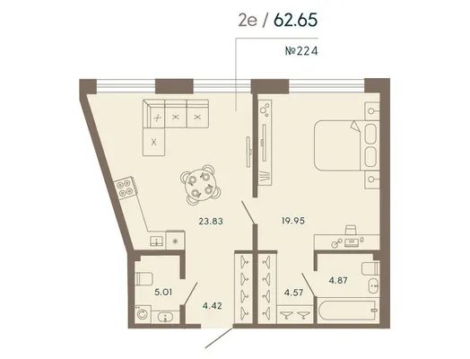1-комн. 62,65 м²