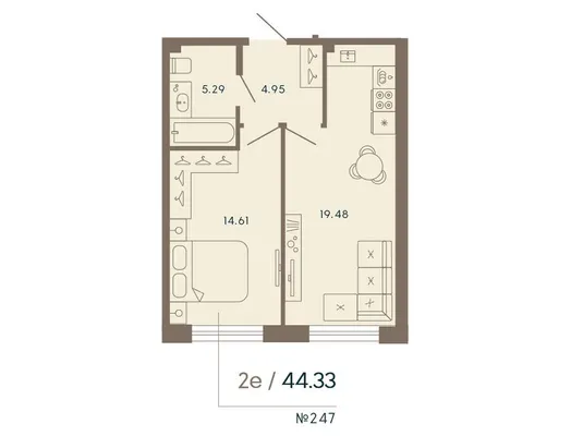 1-комн. 44,33 м²