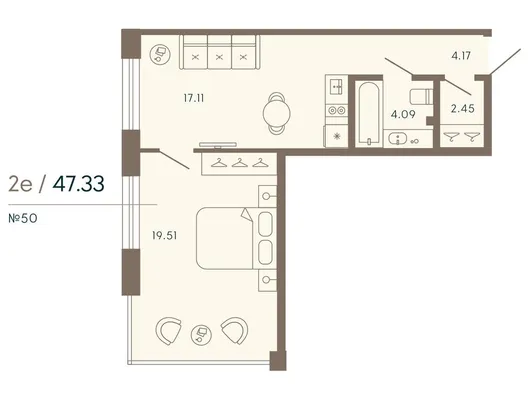 1-комн. 47,33 м²