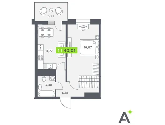 1-комн. от 40,1 до 40,4 м²