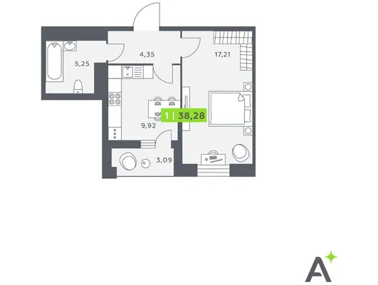1-комн. 37,7 м²