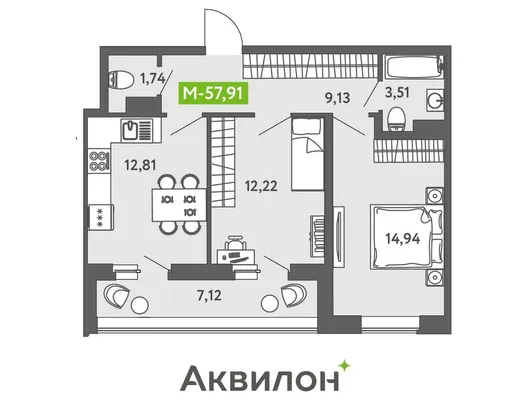 3-комн. 57,4 м²