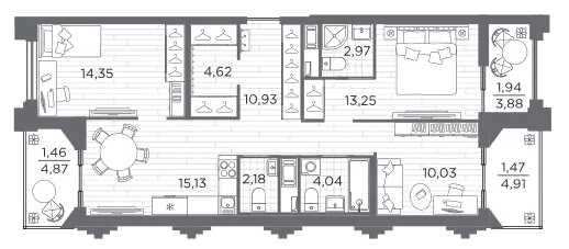 3-комн. 98,47 м²