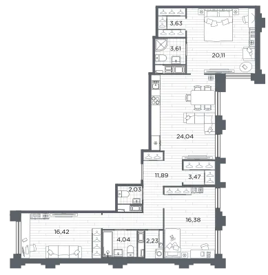 3-комн. от 110,1 до 110,42 м²
