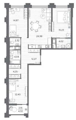 3-комн. от 93,25 до 94,01 м² от 37,22 млн до 40,12 млн ₽