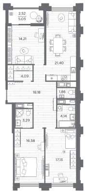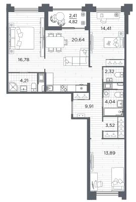 3-комн. 103,4 м² от 39,10 млн до 41,24 млн ₽
