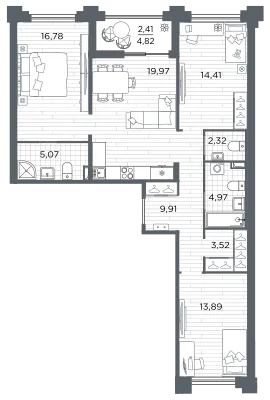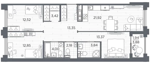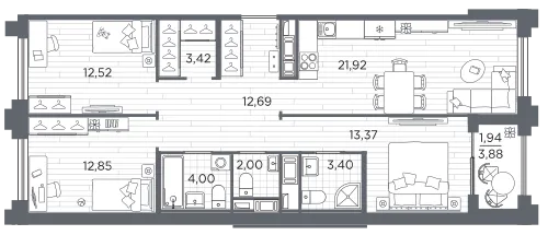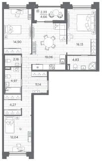 3-комн. 92,13 м² от 37,39 млн до 39,73 млн ₽