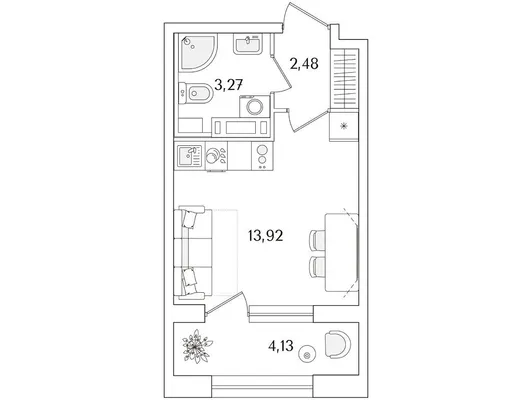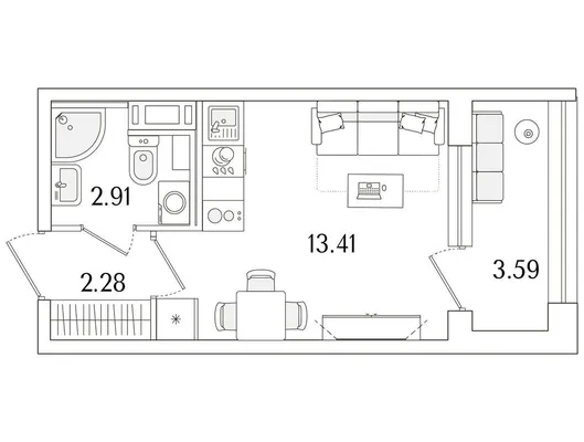 студия 21,74 м² от 8,94 млн до 9,55 млн ₽