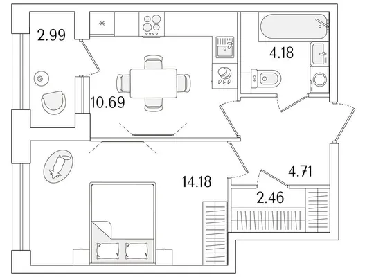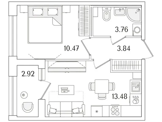 1-комн. от 39,94 до 40,29 м² от 13,46 млн до 14,45 млн ₽