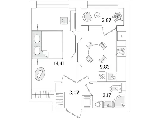 1-комн. от 31,19 до 32,67 м² от 12,41 млн до 13,74 млн ₽