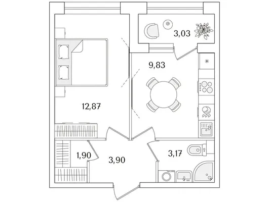 1-комн. от 37,07 до 38,5 м² от 12,59 млн до 16,70 млн ₽