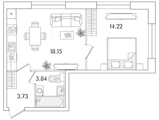 1-комн. от 33,01 до 34,98 м² от 12,22 млн до 14,80 млн ₽