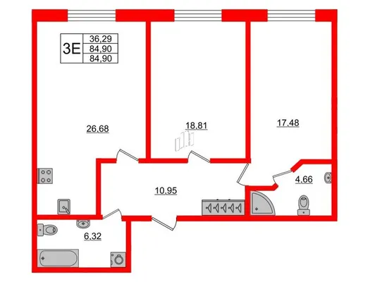 2-комн. 84,9 м²