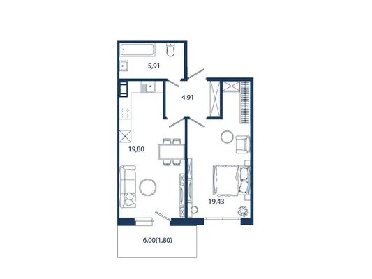 1-комн. 49,39 м²
