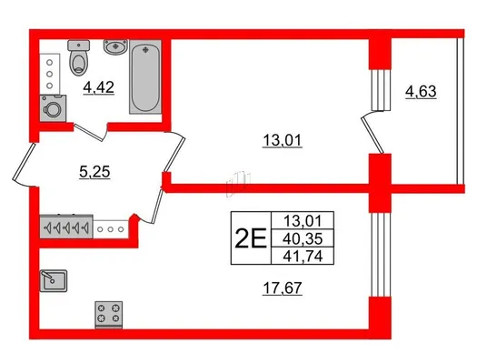 1-комн. от 41,74 до 41,96 м²