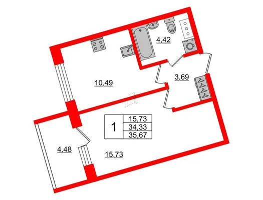 1-комн. 35,67 м²