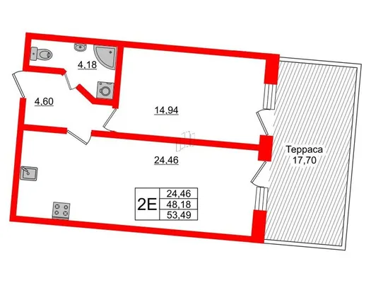 1-комн. 53,49 м²
