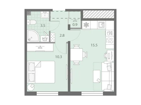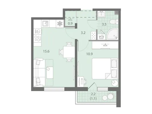 1-комн. от 31,8 до 32,6 м² от 9,76 млн до 10,71 млн ₽