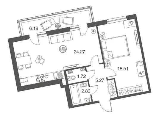 1-комн. 52,9 м²