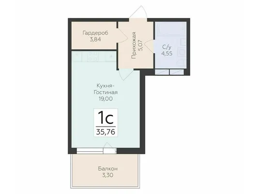 студия 35,76 м²