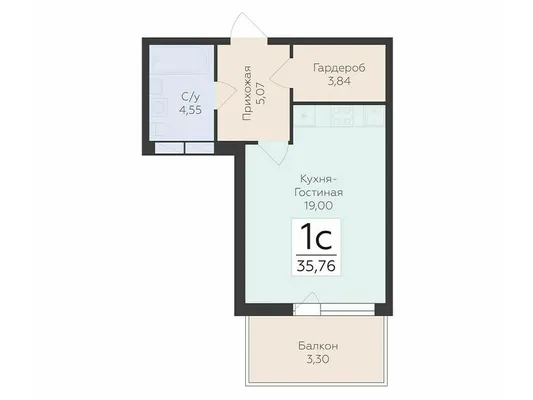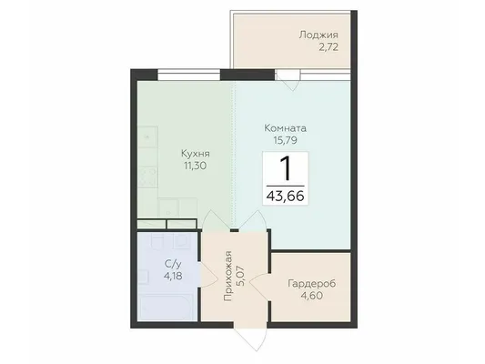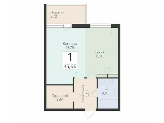 1-комн. 43,66 м² от 5,69 млн до 6,70 млн ₽