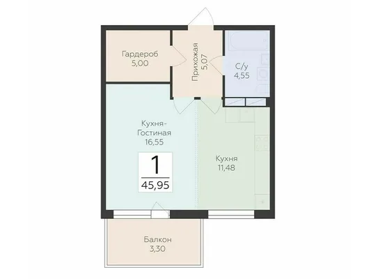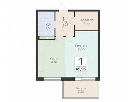 1-комн. 45,95 м² от 5,80 млн до 6,33 млн ₽