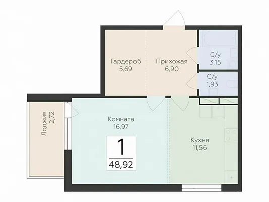 1-комн. 48,92 м² от 6,06 млн до 6,25 млн ₽