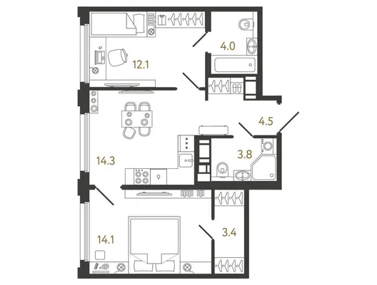 2-комн. 63,8 м² от 20,12 млн до 21,58 млн ₽