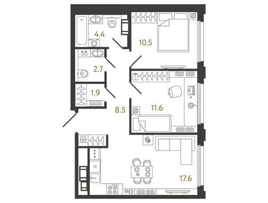 2-комн. 56,2 м² от 17,70 млн до 19,57 млн ₽