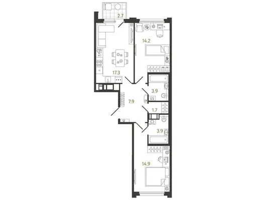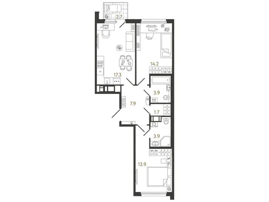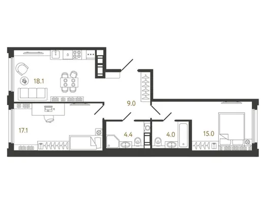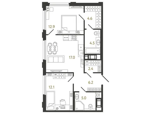 2-комн. 62,8 м² от 21,24 млн до 22,23 млн ₽