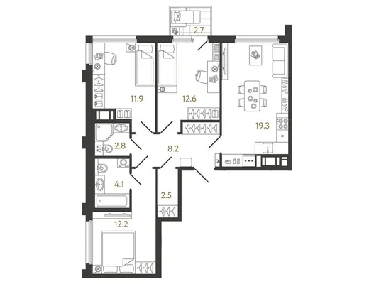 3-комн. 72,9 м²