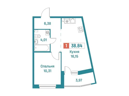 1-комн. 38,84 м²