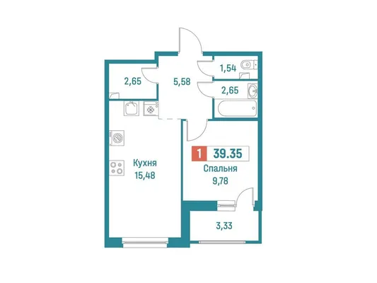 1-комн. 39,35 м²