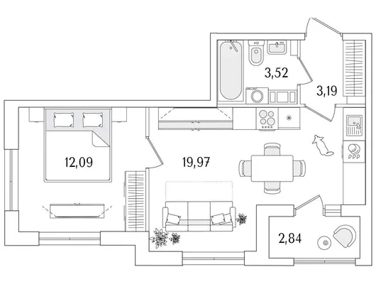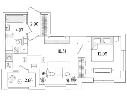 1-комн. 40,19 м²
