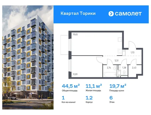 1-комн. 44,53 м² от 6,58 млн до 8,64 млн ₽