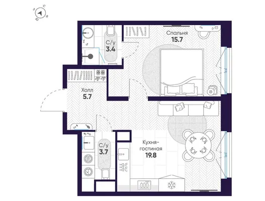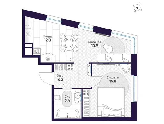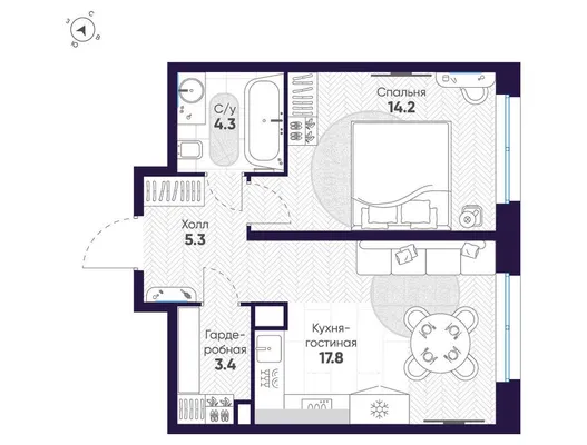 1-комн. от 51,4 до 52,4 м² от 55,13 млн до 70,34 млн ₽