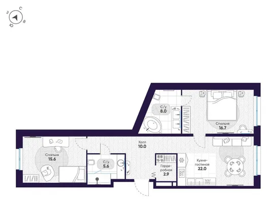 2-комн. от 80,5 до 80,8 м² от 61,37 млн до 78,28 млн ₽