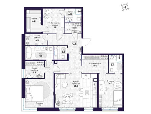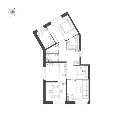 2-комн. 99,4 м² от 92,04 млн до 94,85 млн ₽