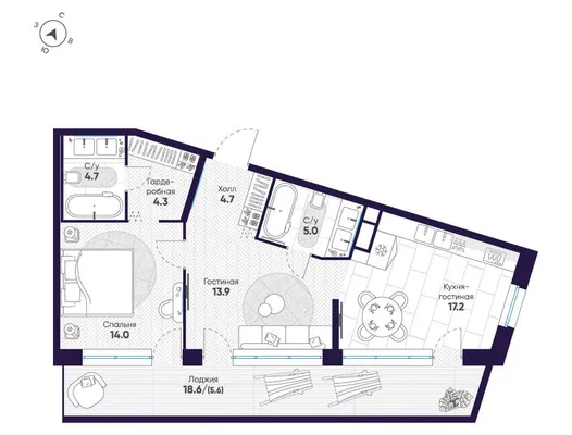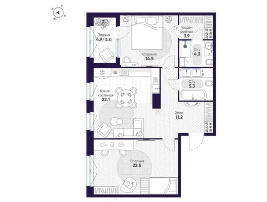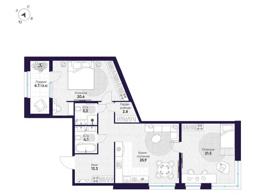 2-комн. от 94,7 до 94,9 м² от 88,15 млн до 91,58 млн ₽