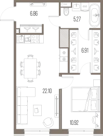 1-комн. 52,06 м² от 23,44 млн до 25,30 млн ₽
