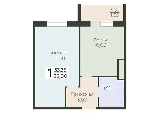 1-комн. от 35 до 35,05 м²