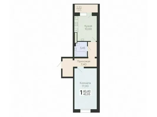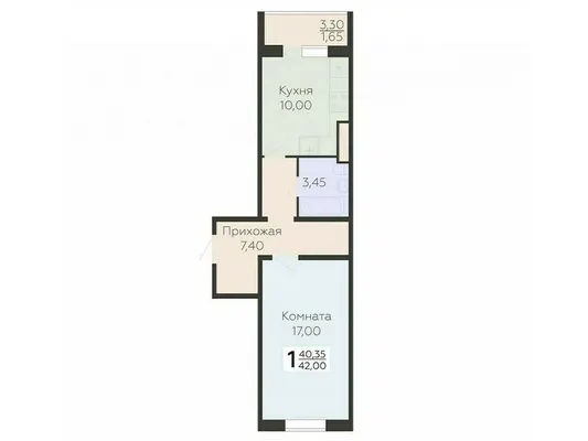 1-комн. от 42 до 42,05 м²