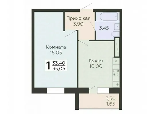 1-комн. от 35,05 до 35,1 м²