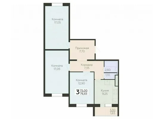 3-комн. 76,65 м²