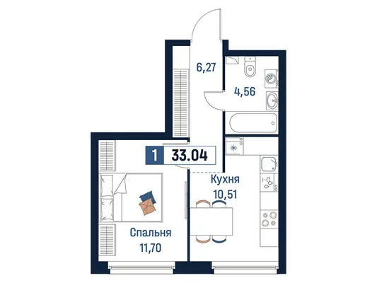 1-комн. от 33,04 до 34,74 м² от 6,91 млн до 7,60 млн ₽