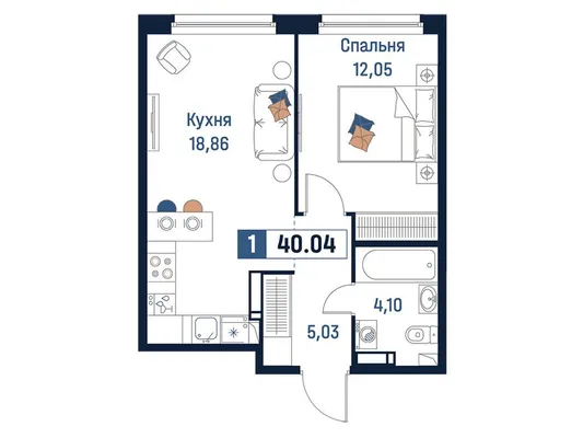 1-комн. от 39,18 до 40,95 м² от 7,54 млн до 8,41 млн ₽
