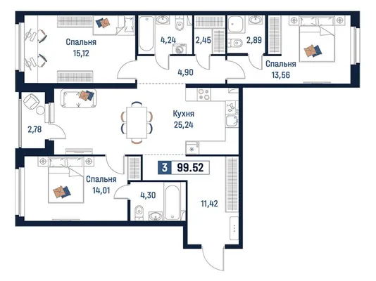3-комн. от 99,36 до 100,92 м²