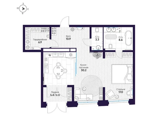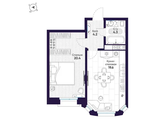 1-комн. от 47,8 до 48,5 м²