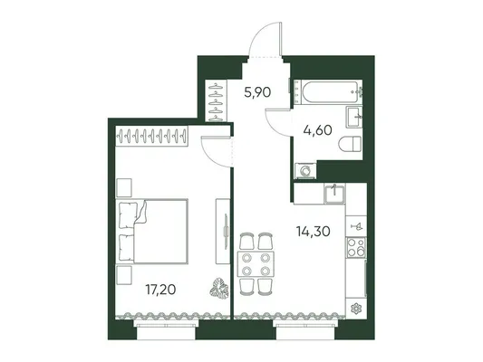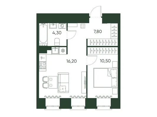 1-комн. 42 м²