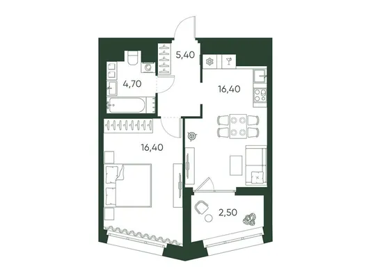 1-комн. 54,4 м²